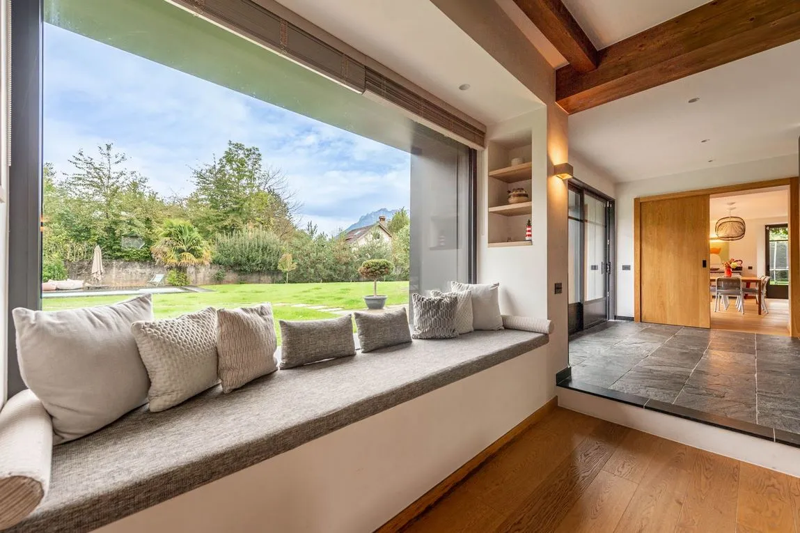 Réhabilitation complète d’une longère du XIXe siècle au bord du lac d’Annecy.