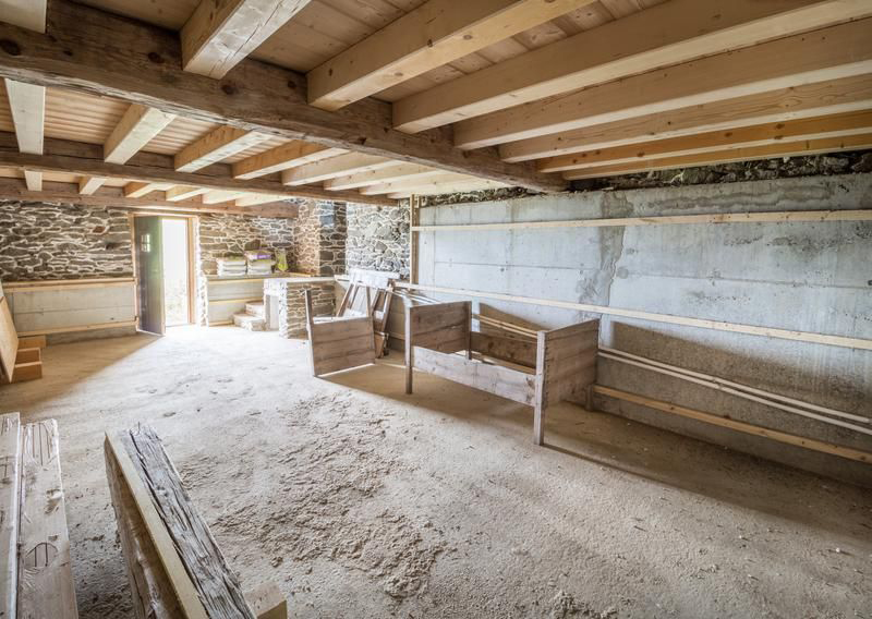 Il était important de pouvoir respecter l’histoire du lieu et donc nous avons essayé au maximum de récupérer des matériaux issus du démontage intégral de la charpente et toiture pour les replacer.